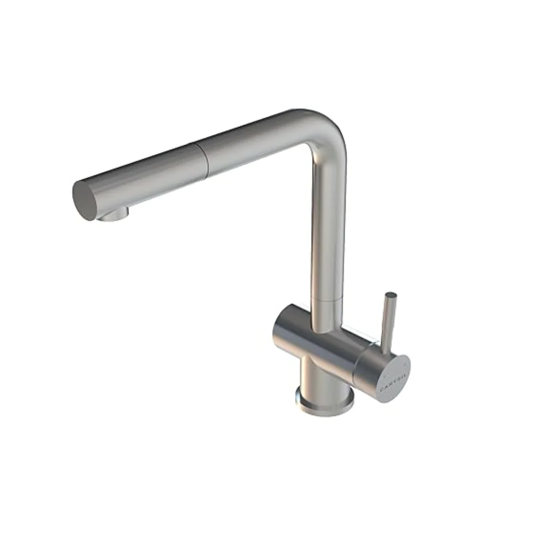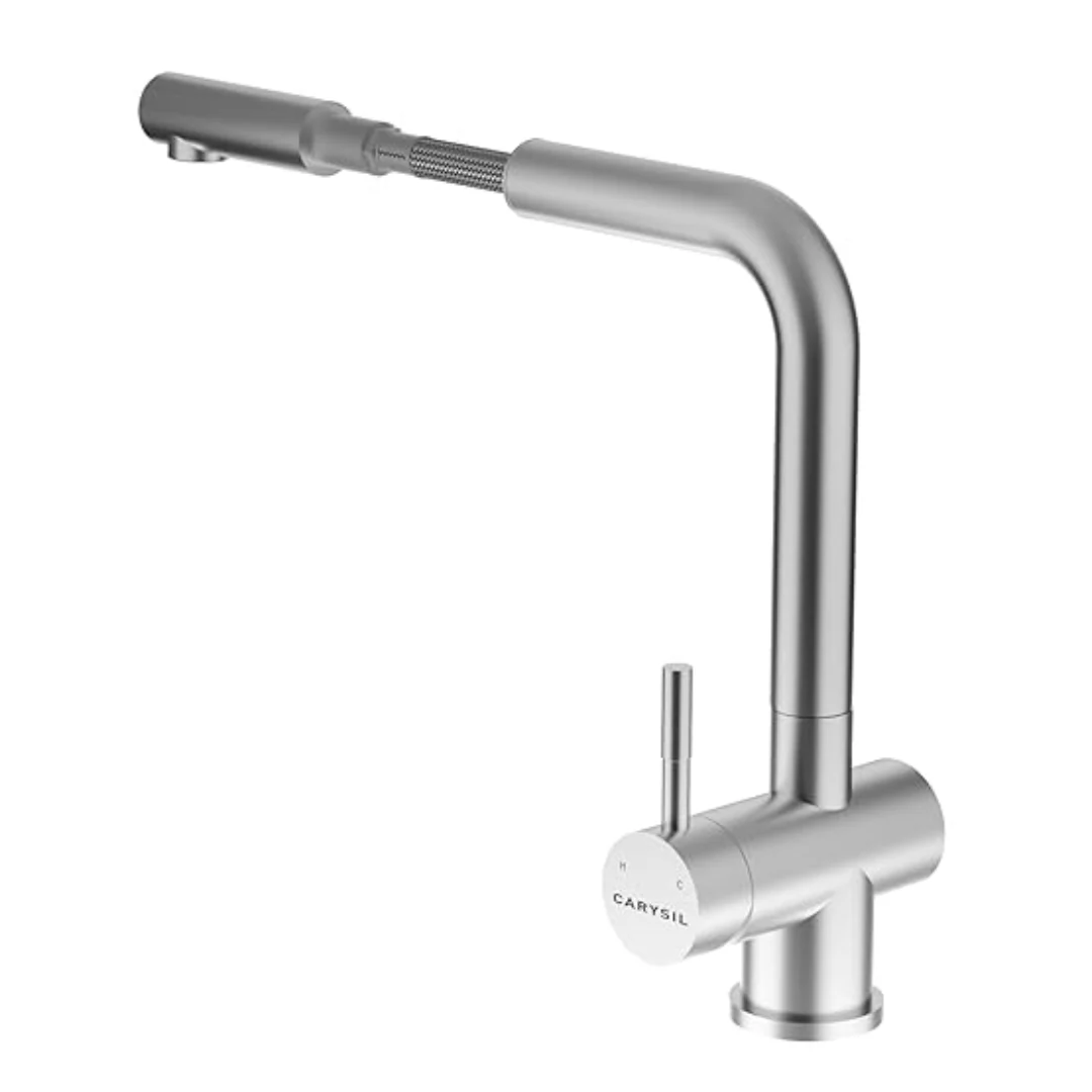 Carysil Alpha 2202 Kitchen Sink Faucet, L-Shape Pull-Out Tap, Spray Modes, 360° Swivel Spout, Single Lever Hot & Cold Mixer, 35mm Cartridge, Stainless Steel Body, Matt Finish