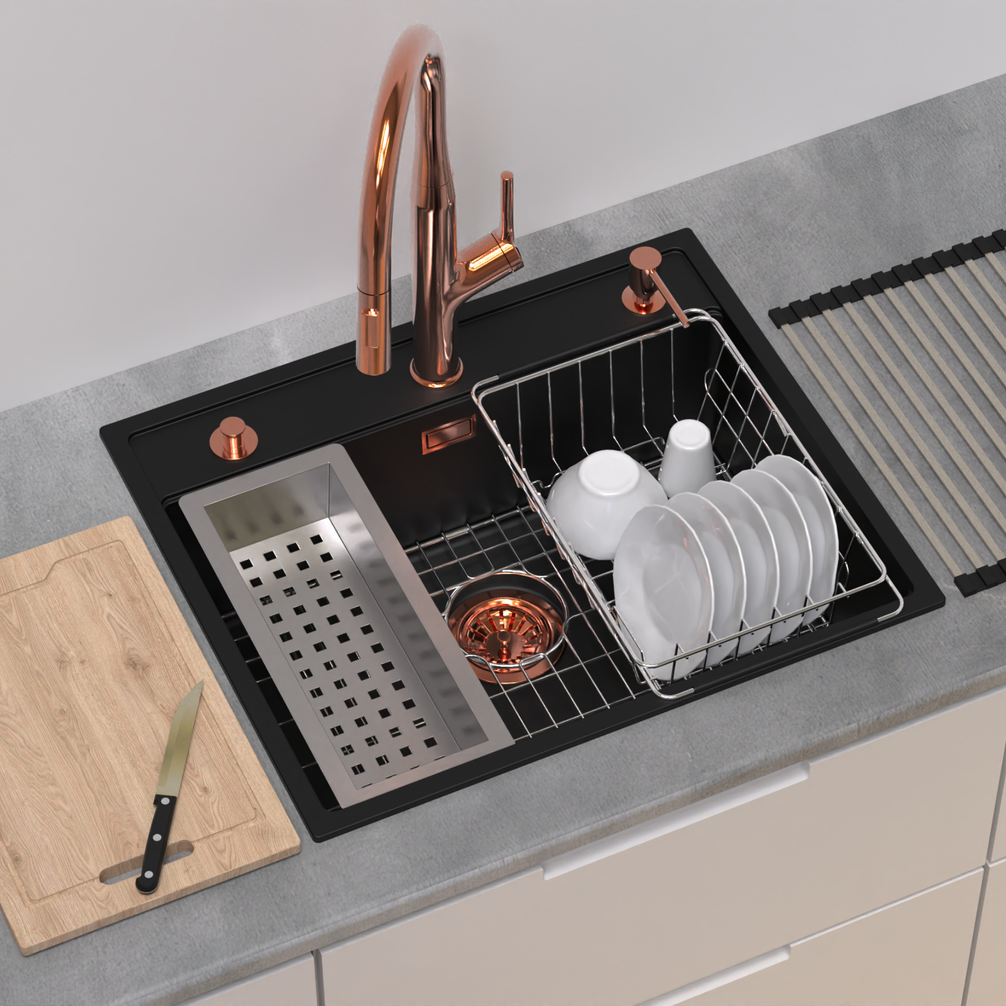 Carysil sink accessories make everyday prep easier. With smart add-ons like the colander, chopping board, glass rinser, and more, everything stays in place and within reach—turning your sink into a streamlined prep zone and your kitchen into the most efficient spot in the home. Available in multiple finishes to complement your kitchen sink space.