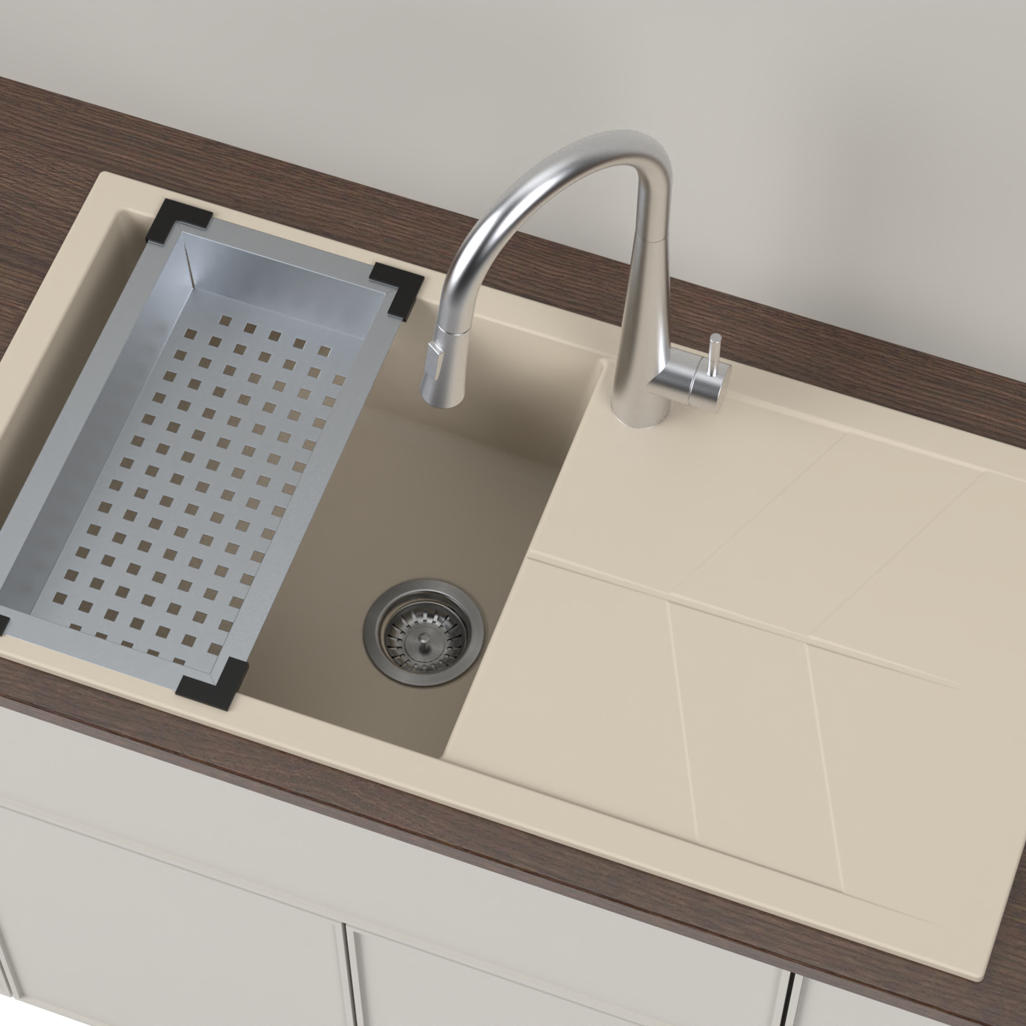 Compact yet highly functional, the Jazz Single Bowl Quartz Sink is perfect for modern kitchens with limited space. Its deep, spacious bowl and integrated drainboard offer seamless prep and wash convenience. Made from 80% natural quartz, it’s built to resist heat, stains, and scratches—delivering long-lasting performance in a sleek, minimalist design.