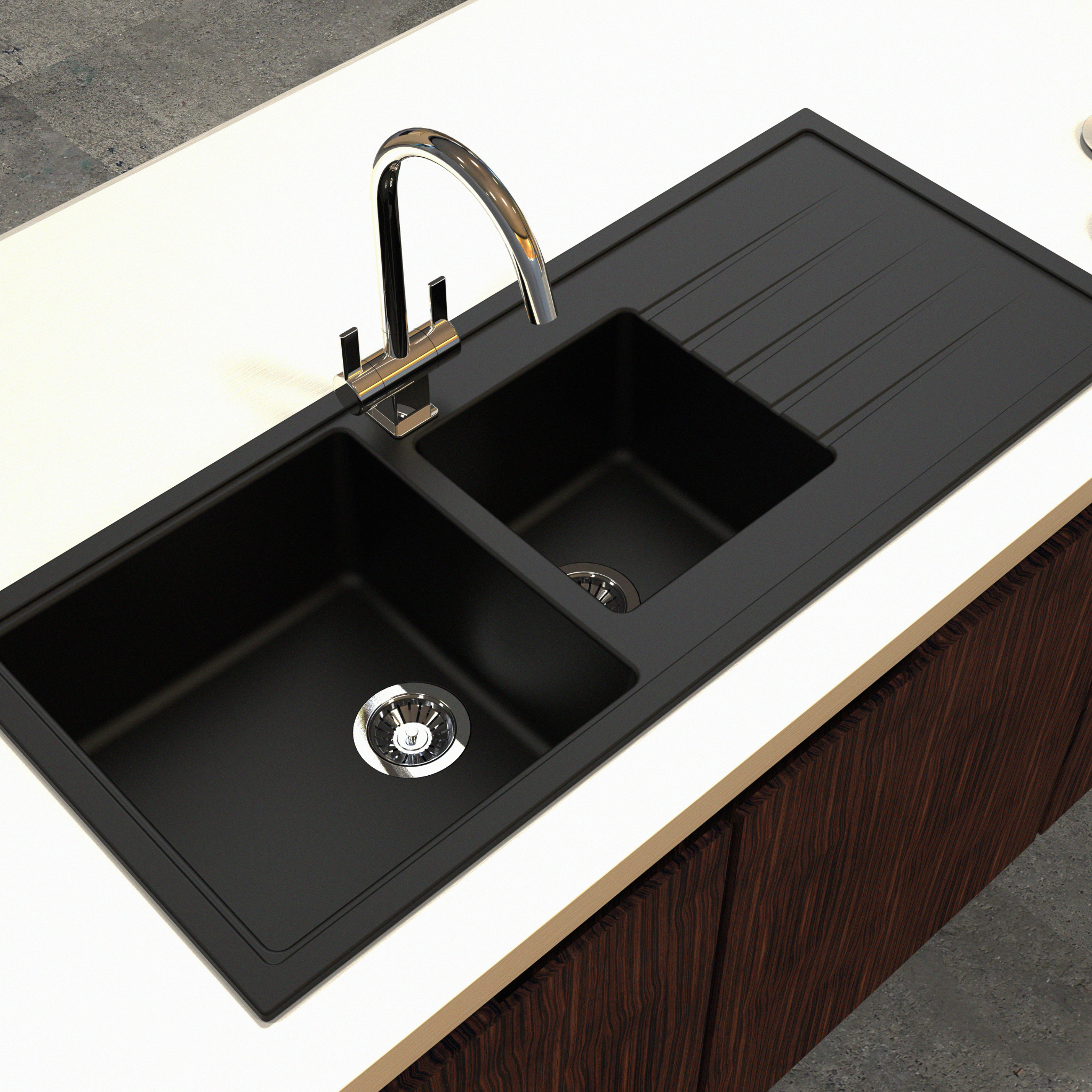 Carysil quartz sinks are crafted from a blend of 80% natural quartz and 20% acrylic resin, ensuring strength and a refined finish.