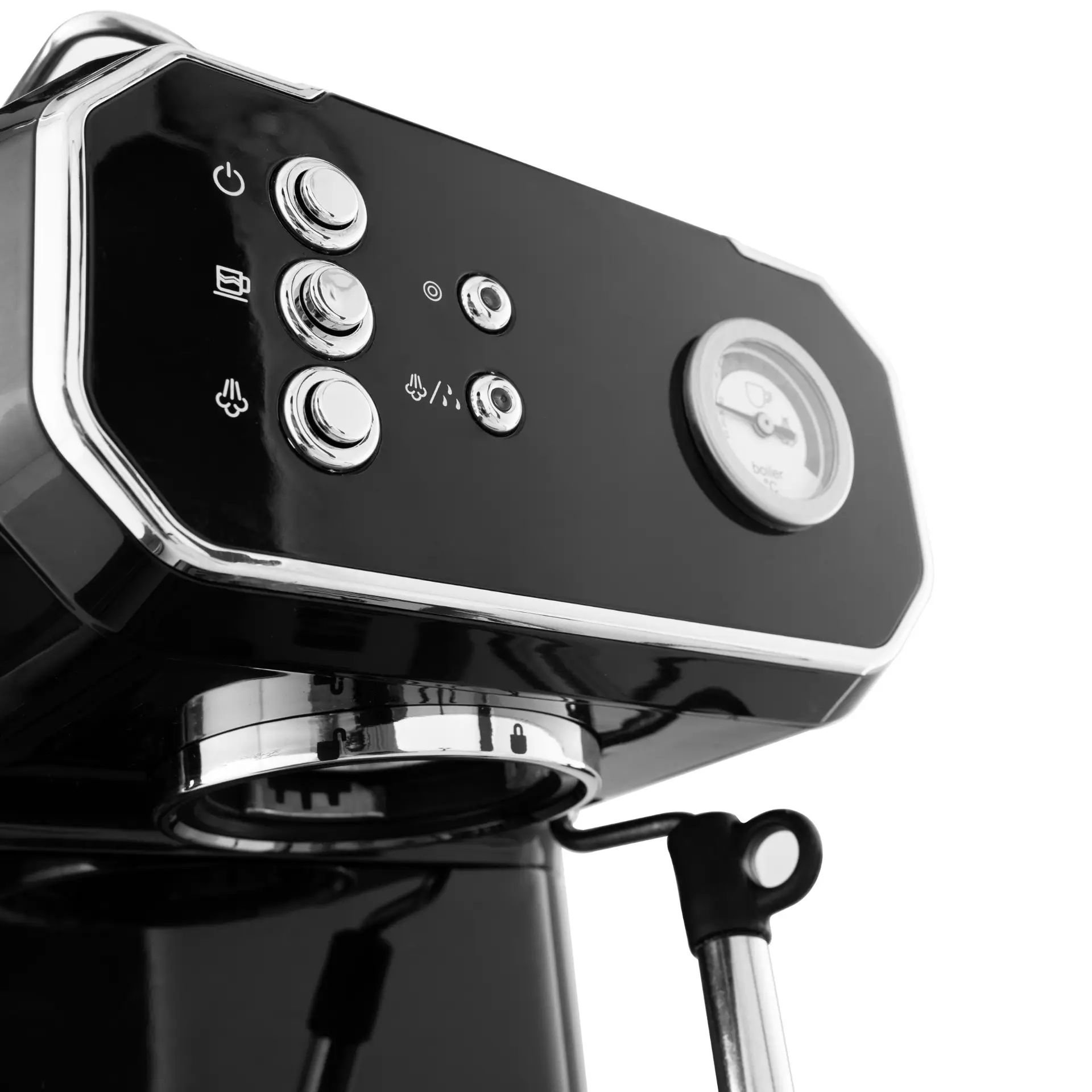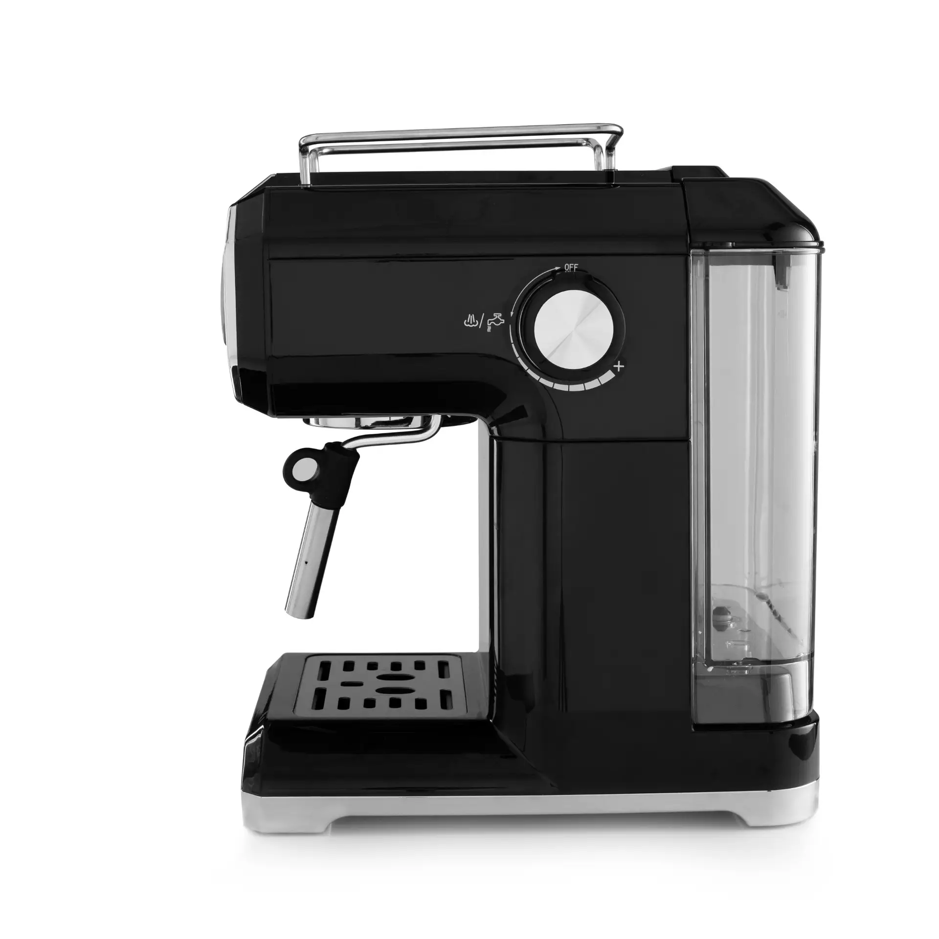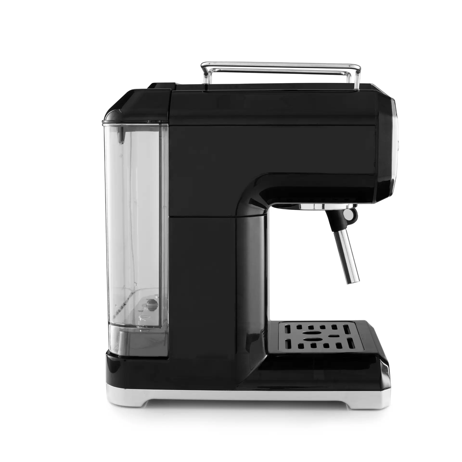 Brew barista-style coffee at home with this espresso machine featuring a detachable frothing nozzle and drip tray. Perfect for cappuccinos, lattes, mochas, and more, it combines style with function in a durable stainless steel build and sleek black finish.