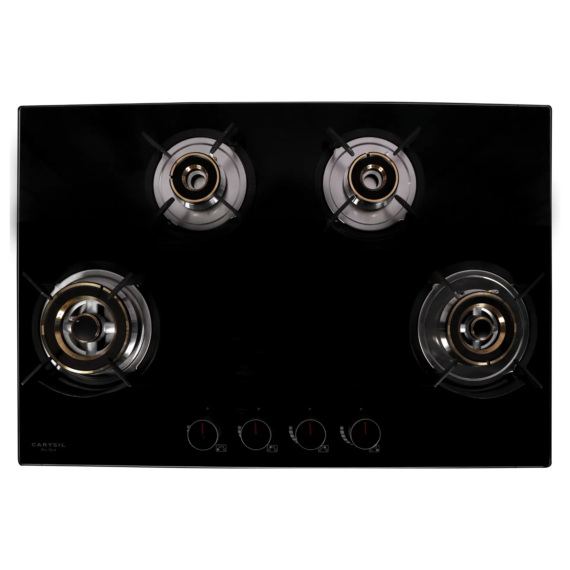 Carysil built-in hobs come with multiple burners for efficient cooking. Equipped with auto-ignition, flame failure safety devices, and sturdy pan supports, they are built for safe and steady use. Available in glass or steel finishes, they fit seamlessly into the countertop, keeping the workspace uncluttered.