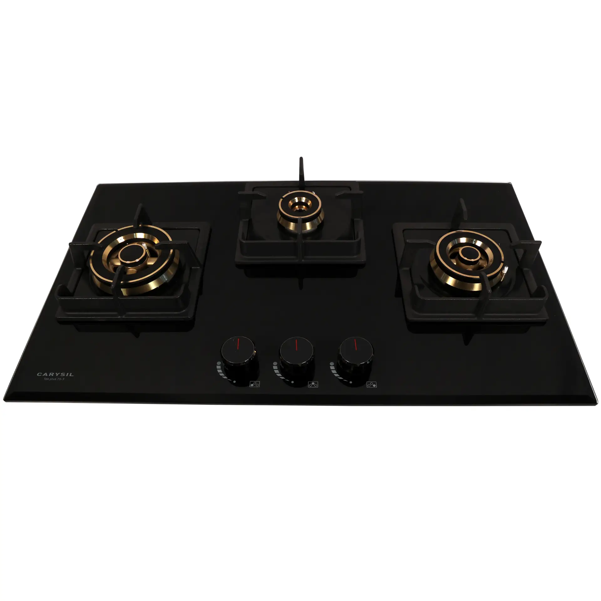 Carysil Tek Plus 75cm Built-in Glass Hob, 3 Brass Burner