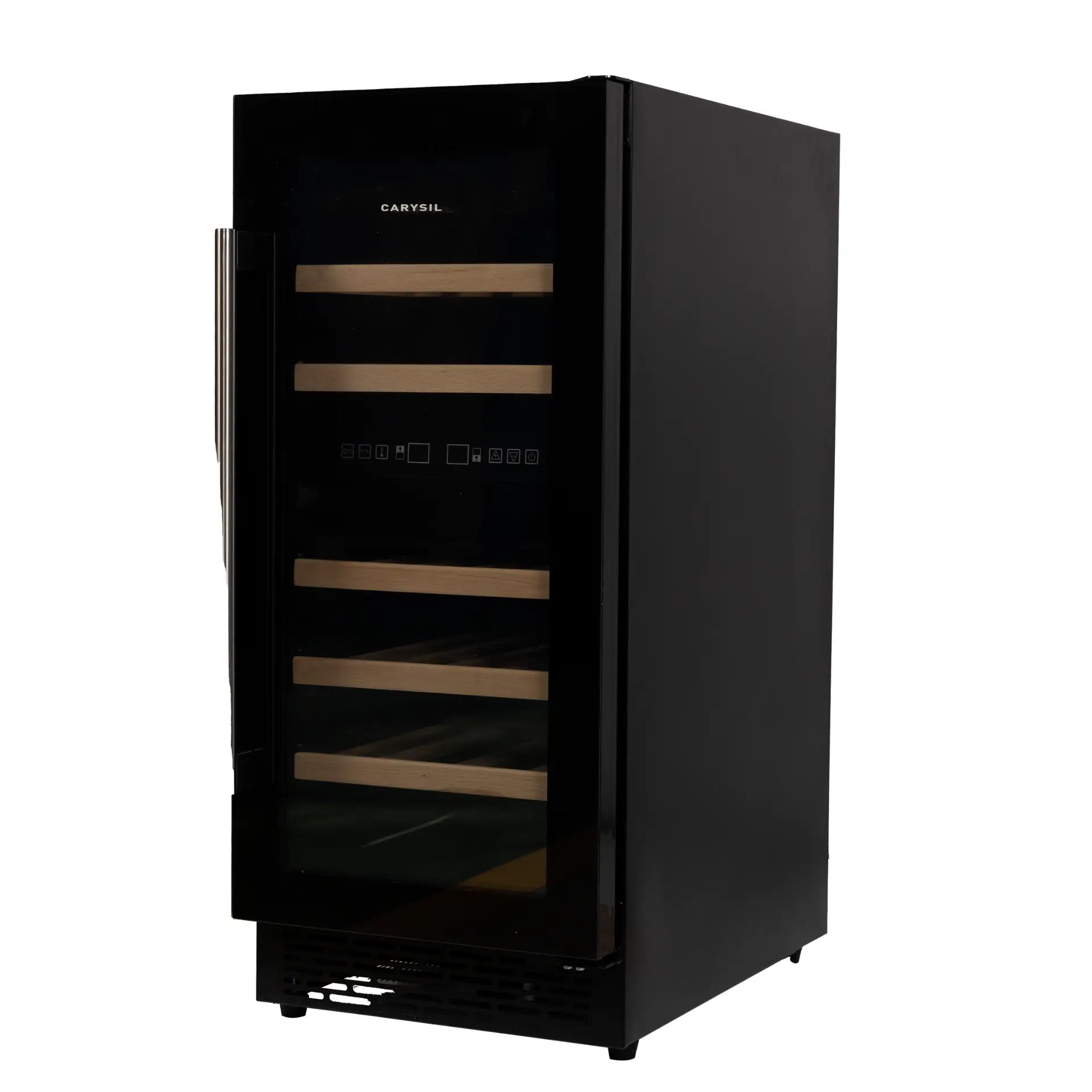 Carysil wine chillers store bottles at consistent temperatures to preserve flavor and aroma. Available in single and dual-zone models, they accommodate various bottle sizes and cooling needs. UV-resistant glass doors and vibration control ensure wine is stored in optimal conditions.