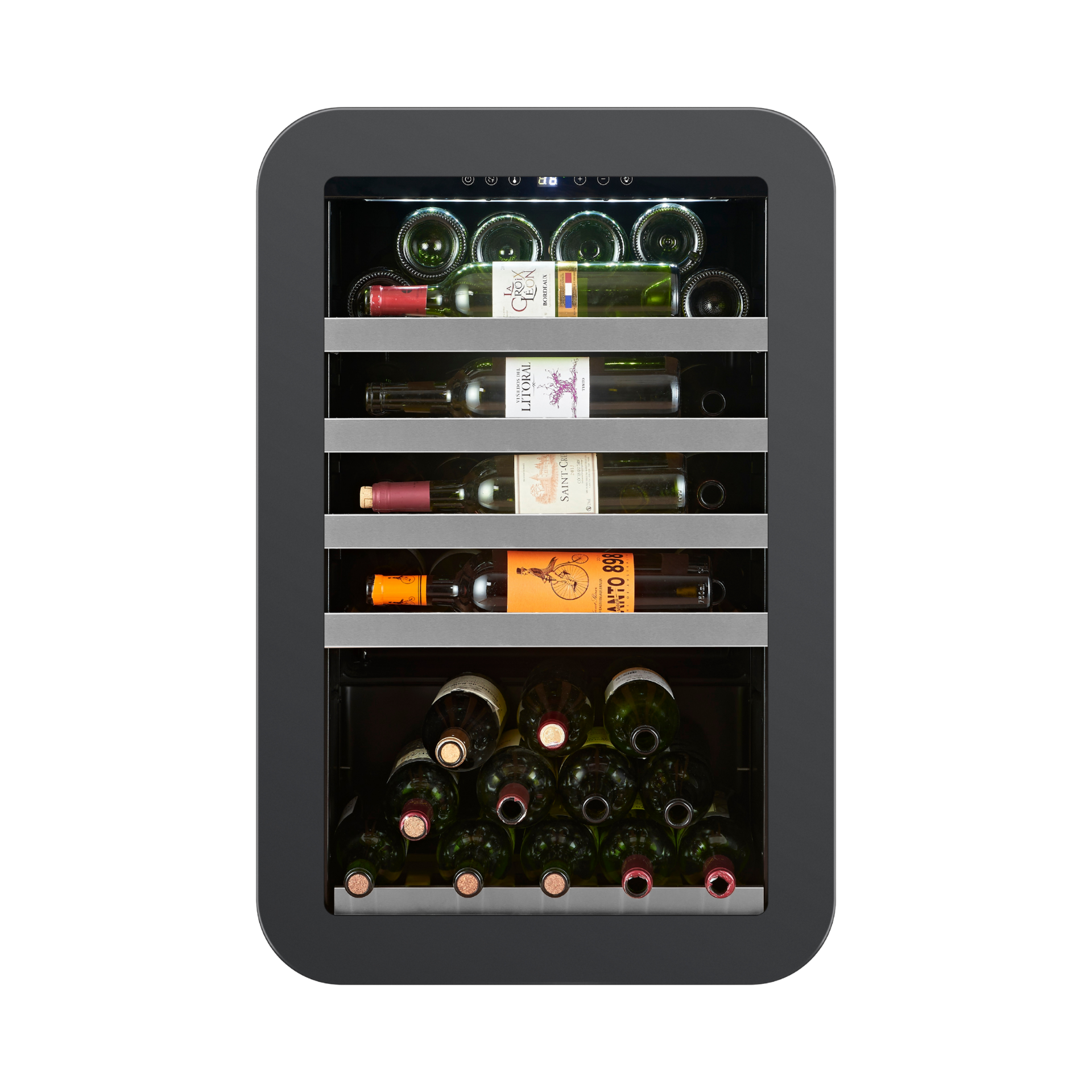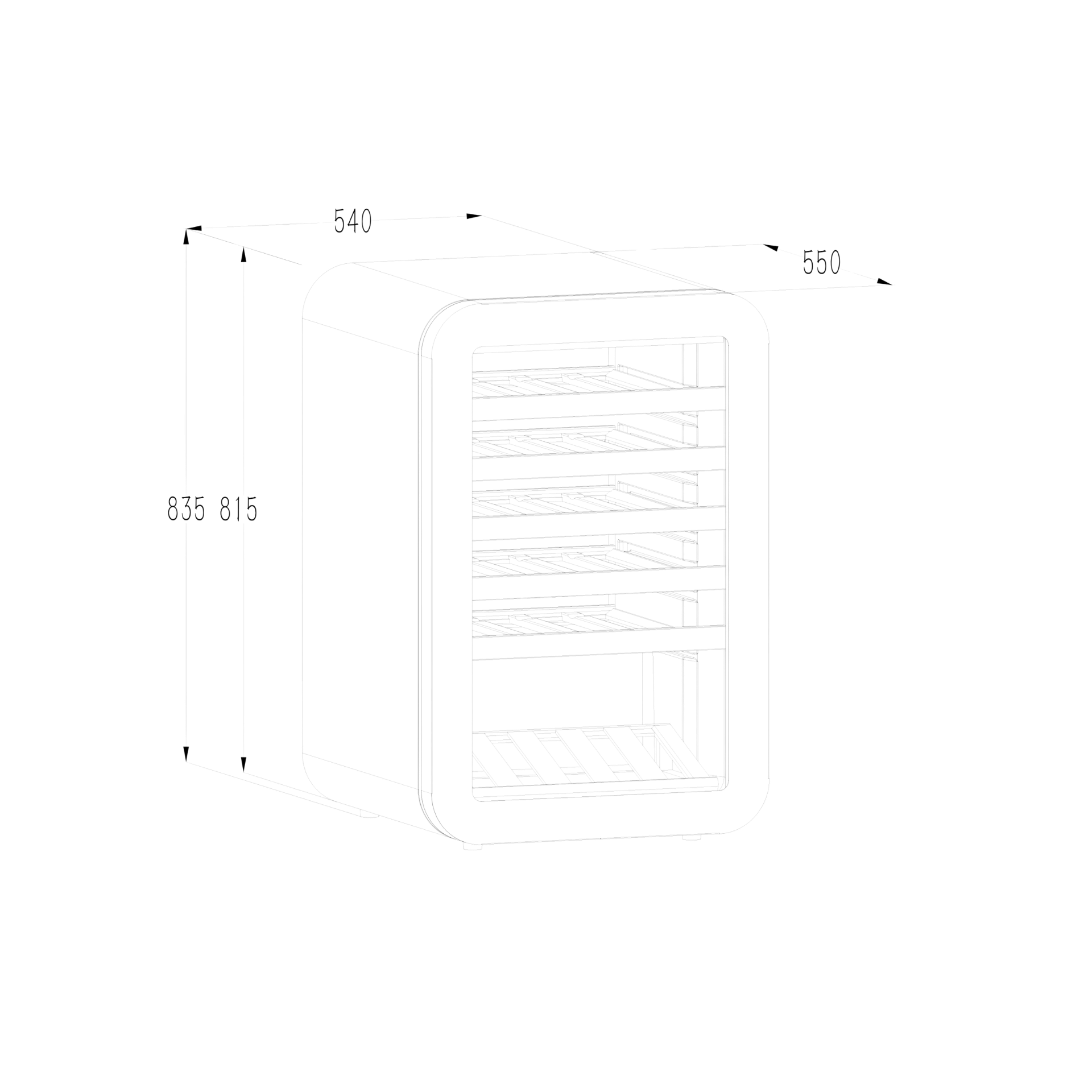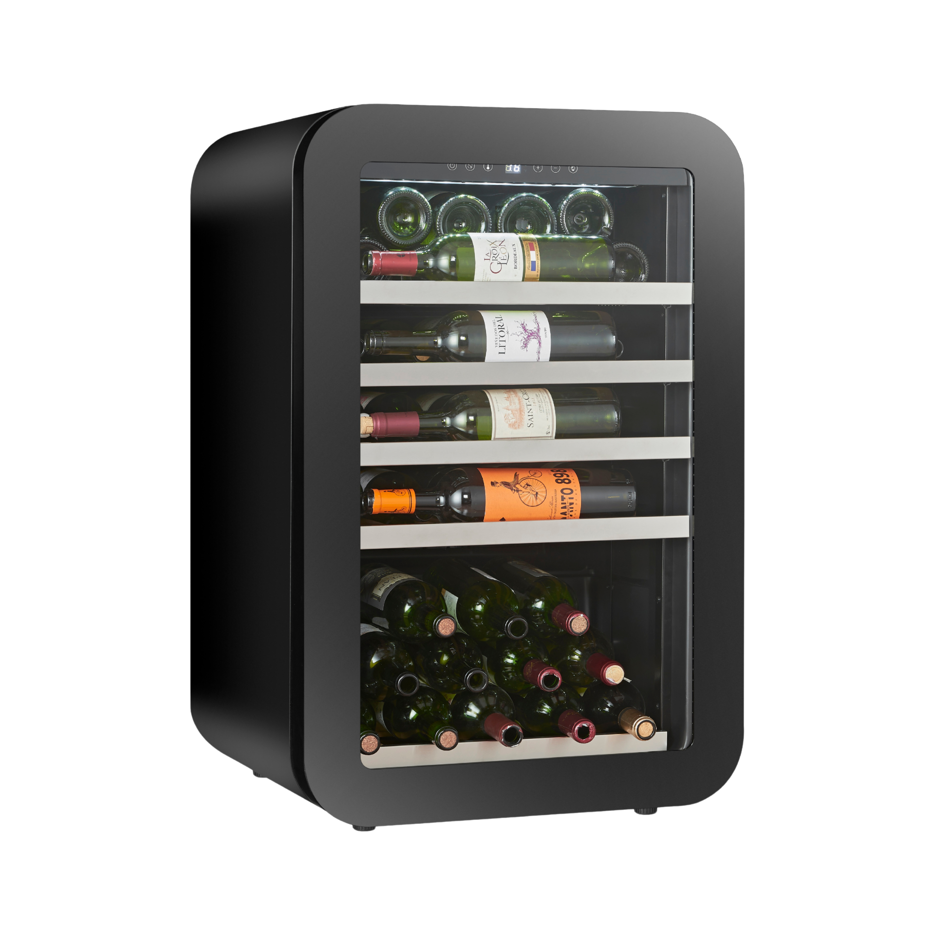 The elegant black casing gives the wine chiller a modern and luxurious appearance, blending seamlessly into any contemporary space. The transparent panoramic door adds to its aesthetic appeal and allows you to display your wine collection beautifully while keeping it easily accessible.