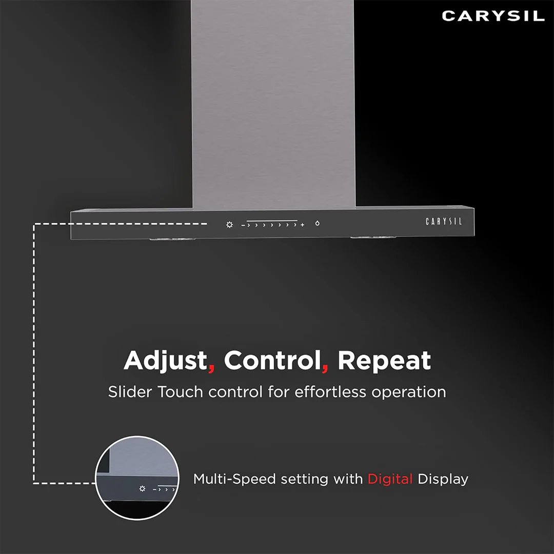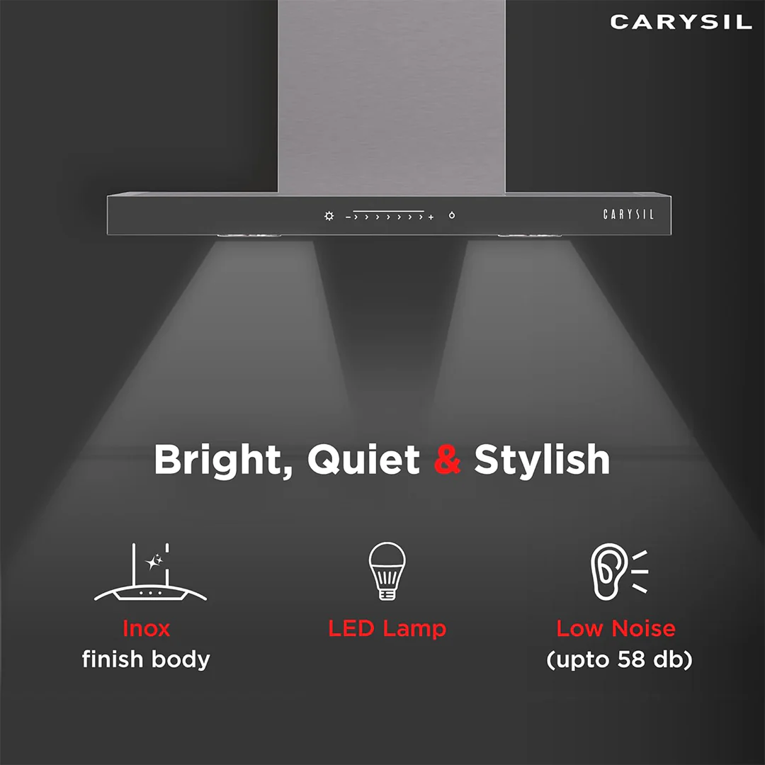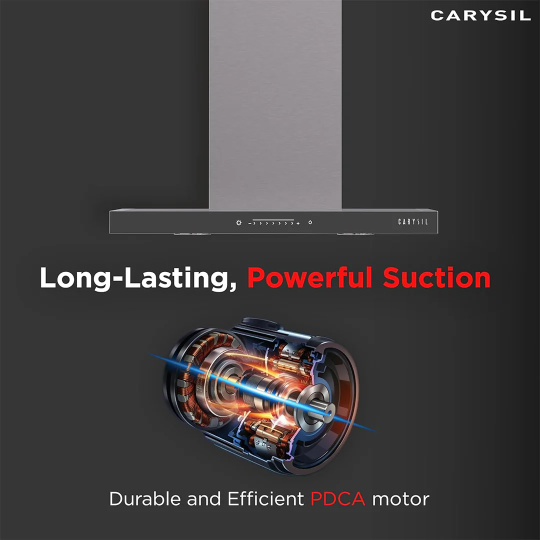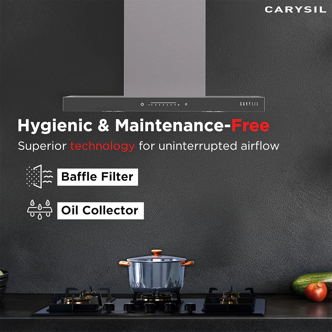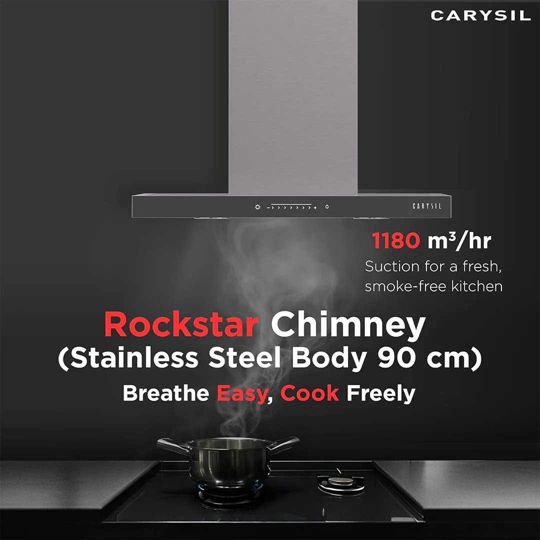 Carysil chimneys offer powerful suction to eliminate smoke, grease, and odor from the kitchen. With features like touch control panels, baffle filters, and auto-clean technology, they keep the kitchen environment fresh and reduce maintenance time.