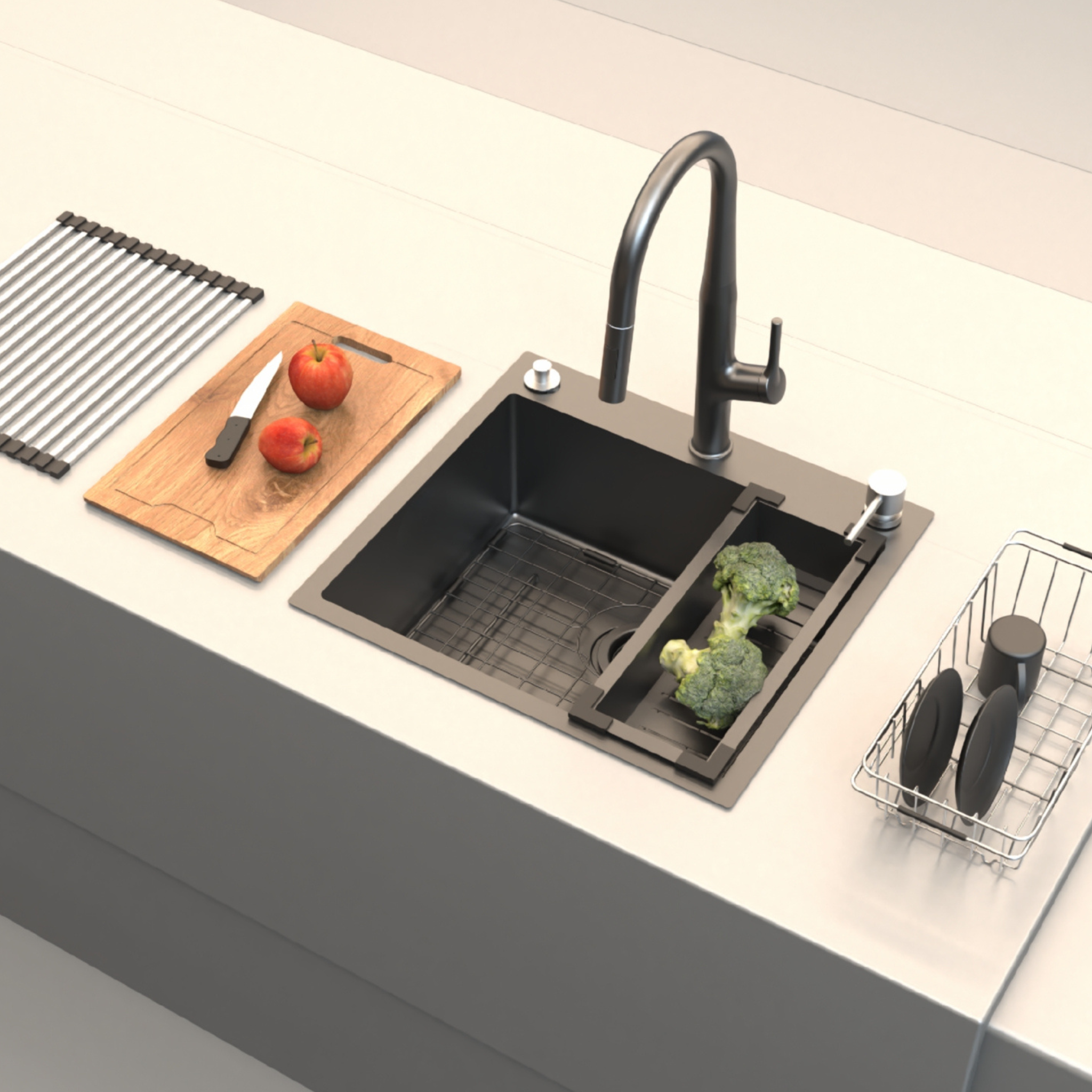 Compact yet multifunctional, the SS Workstation 550 is perfect for smaller kitchens that demand more from every inch of counter space. With an integrated ledge system, it supports a range of accessories like chopping boards and colanders, turning this 304 stainless steel sink into a complete prep zone.
